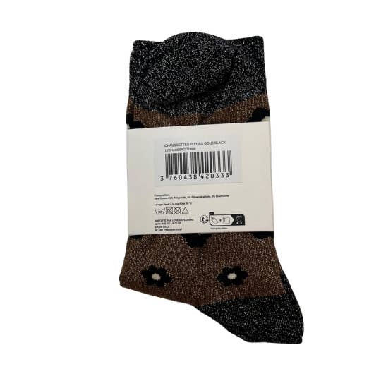 Composition : 38% coton peigné, 37% polyester, 22% nylon, 3% élasthanne et fibres métallisées