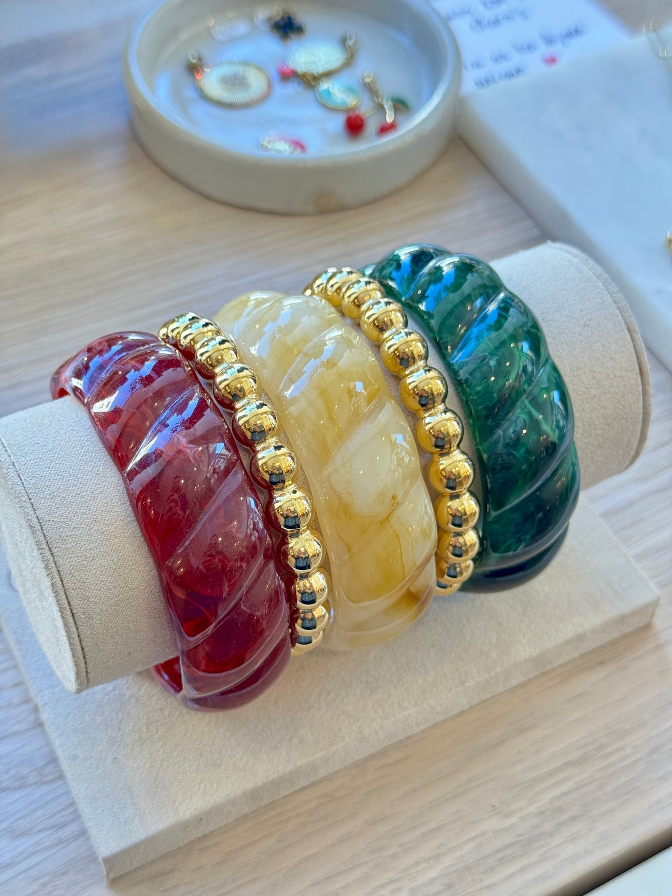 Etant de l'acétate, les formes et les couleurs peuvent varier d'une pièce à l'autre.