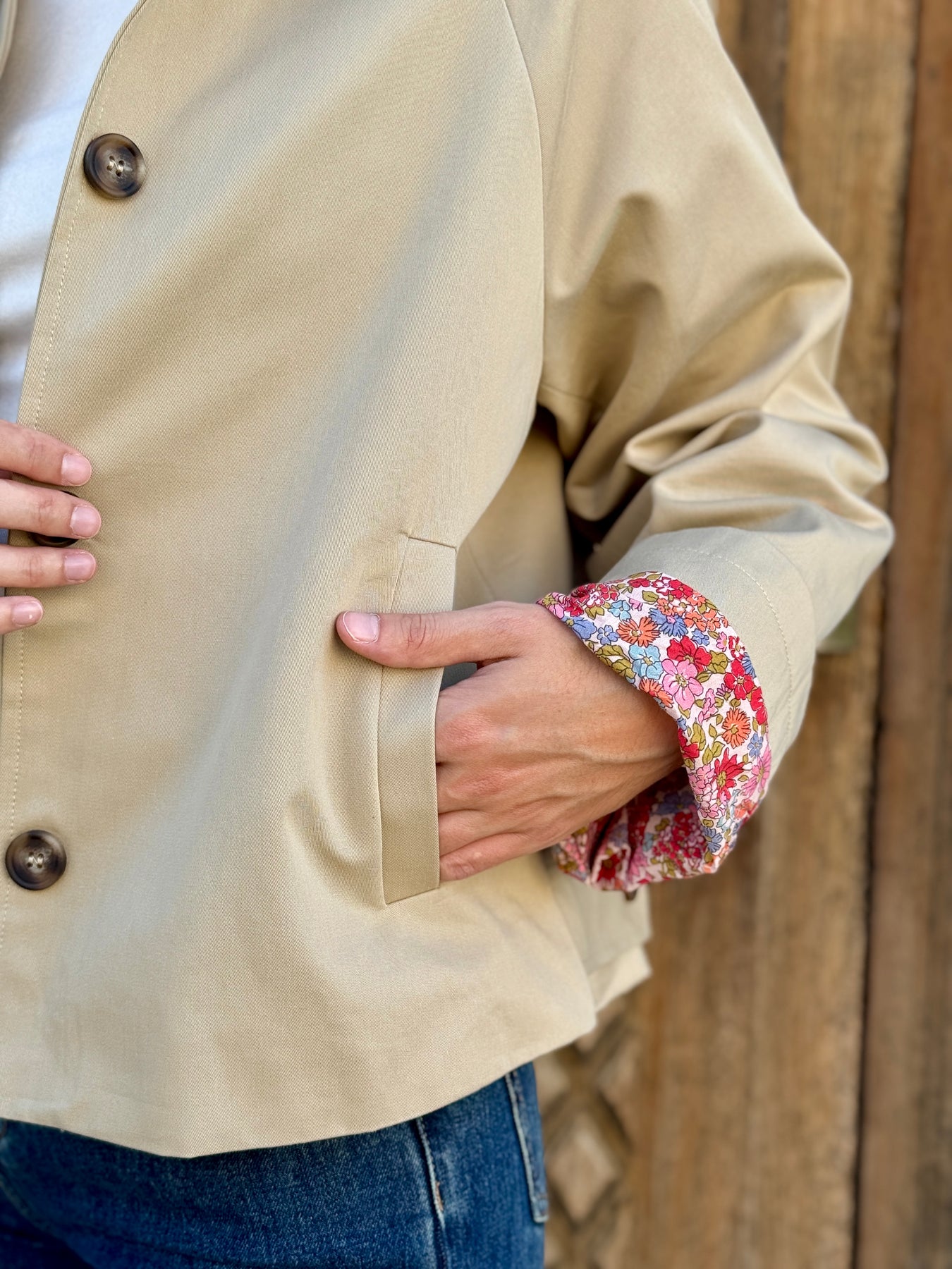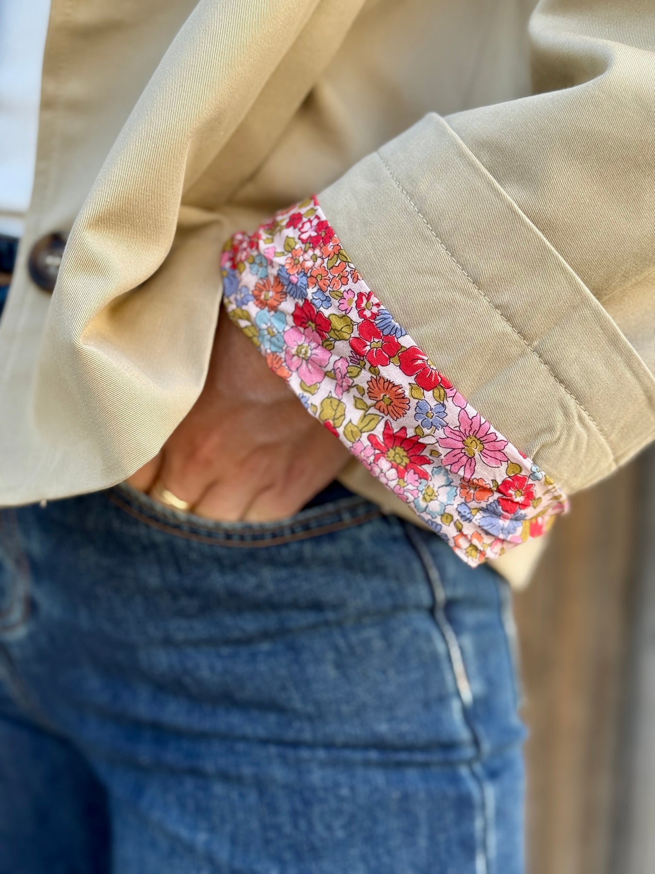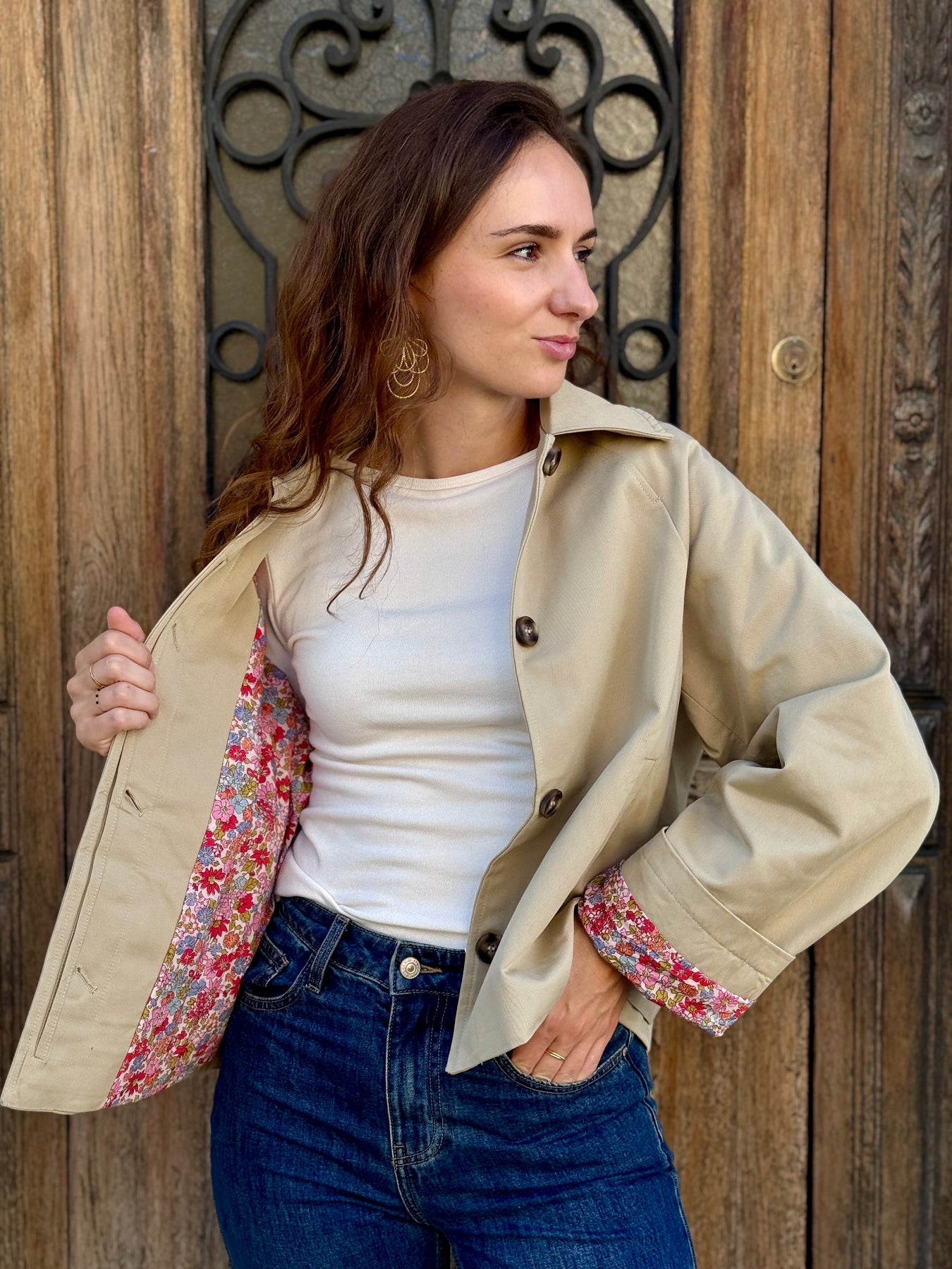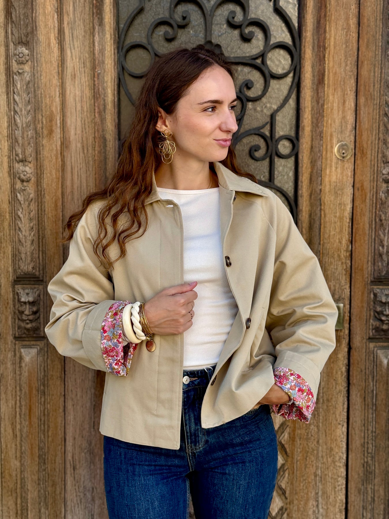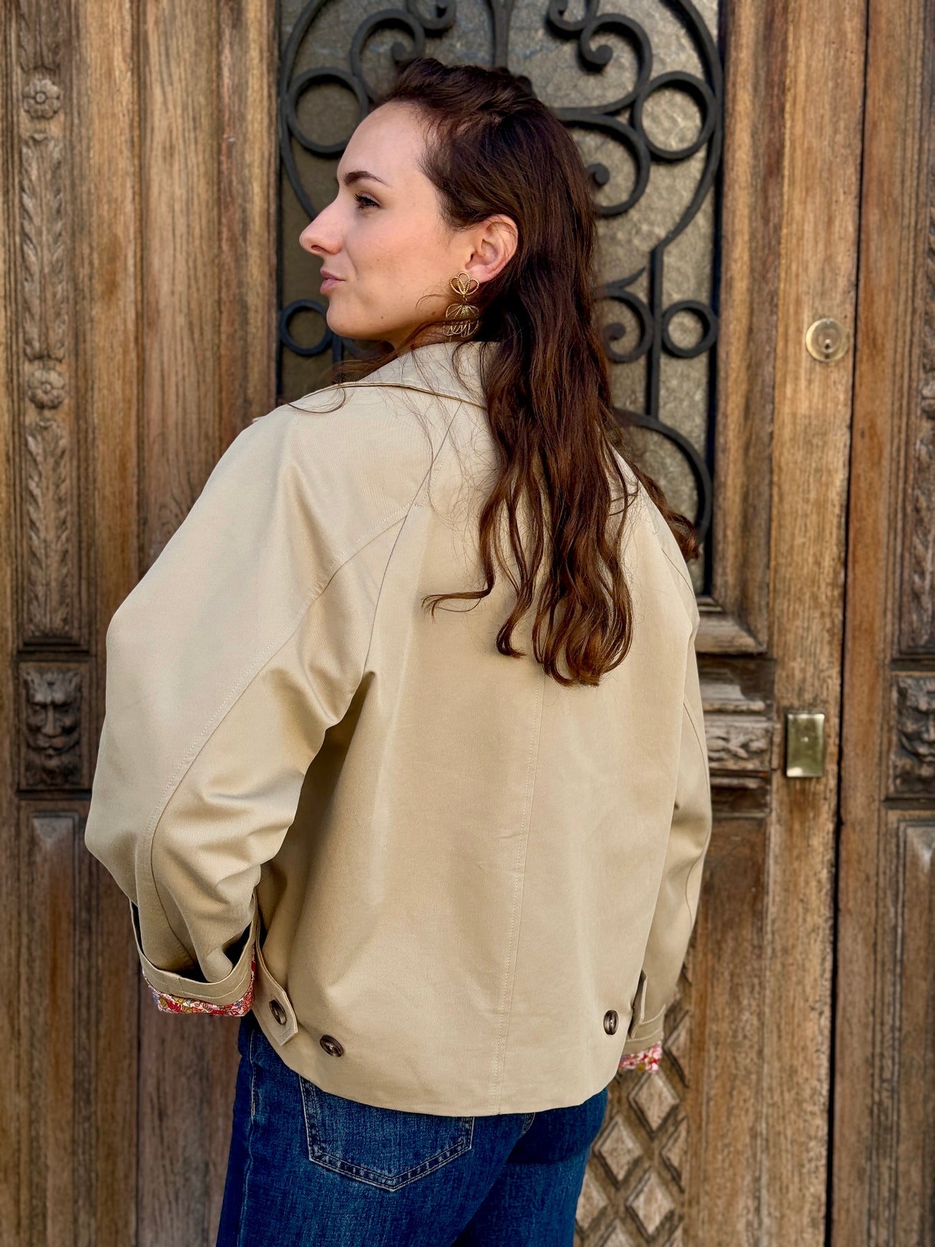Trench beige sable de très belle qualité ! Sa doublure liberty visible sur la doublure apporte une touche de fraicheur à cette pièce intemporelle.