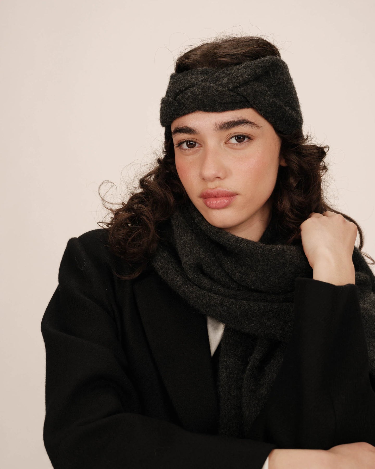 Tendance et chaude, la cagoule est tricotée dans un fil en polyester recyclé. C'est un essentiel de la saison automne/hiver,