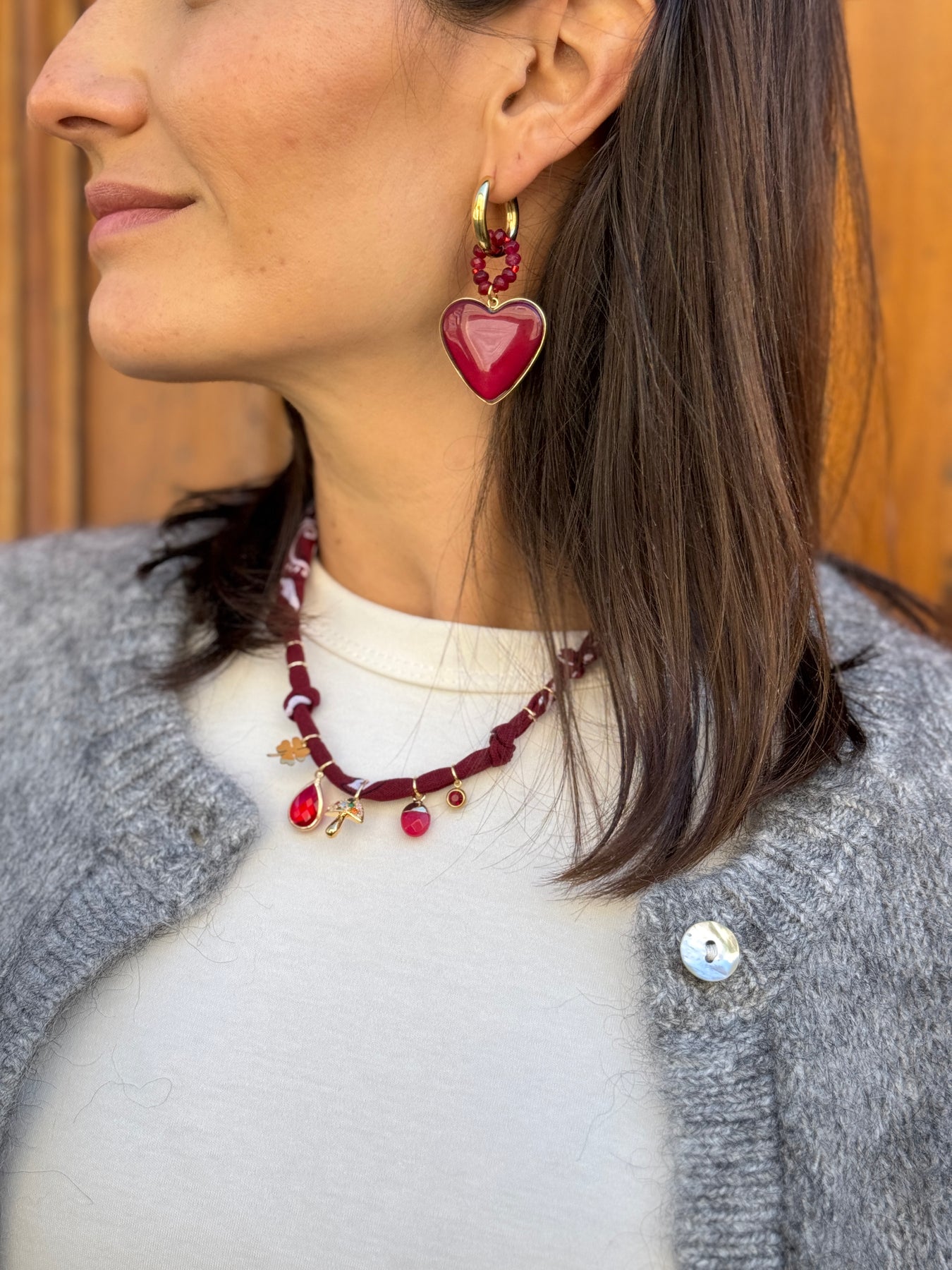 Les perles sont principalement en verre, tandis que d'autres grigris/amulettes sont en nacre ou émail