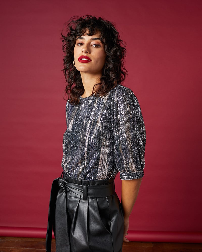 La silhouette : On aime ce top qui brille grâce à ses sequins. Il illumine votre tenue au quotidien mais également en soirée !