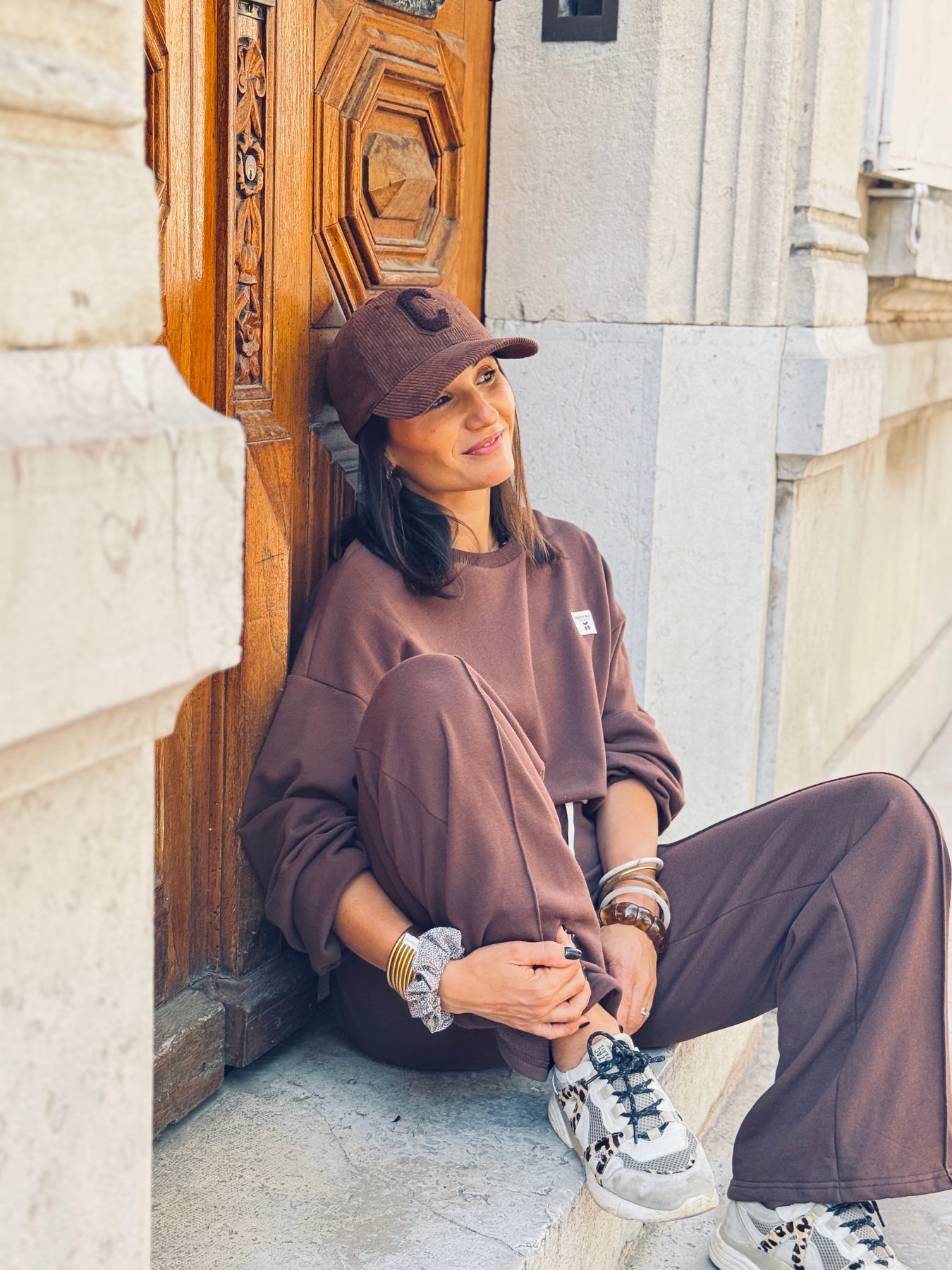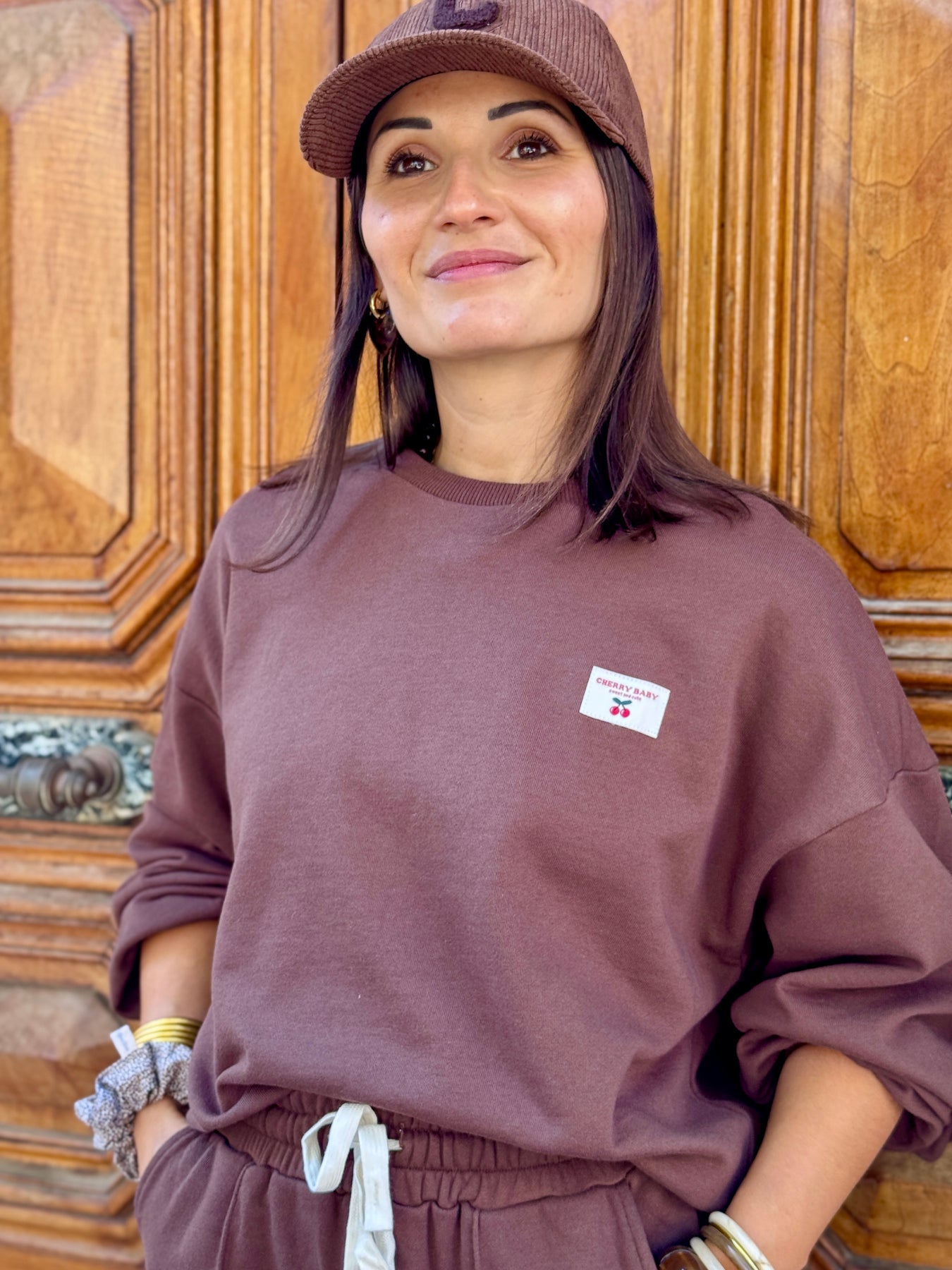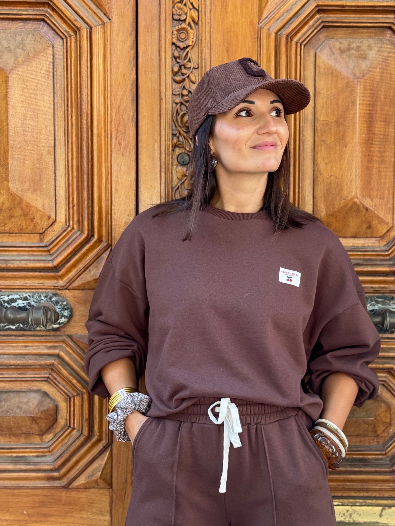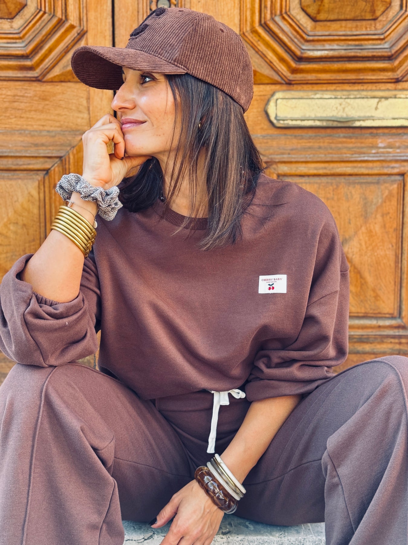 Ensemble Sweat (col rond, manches longues) + Pantalon jogging chocolat ( taille élastique, lien à resserrer, 2 poches )