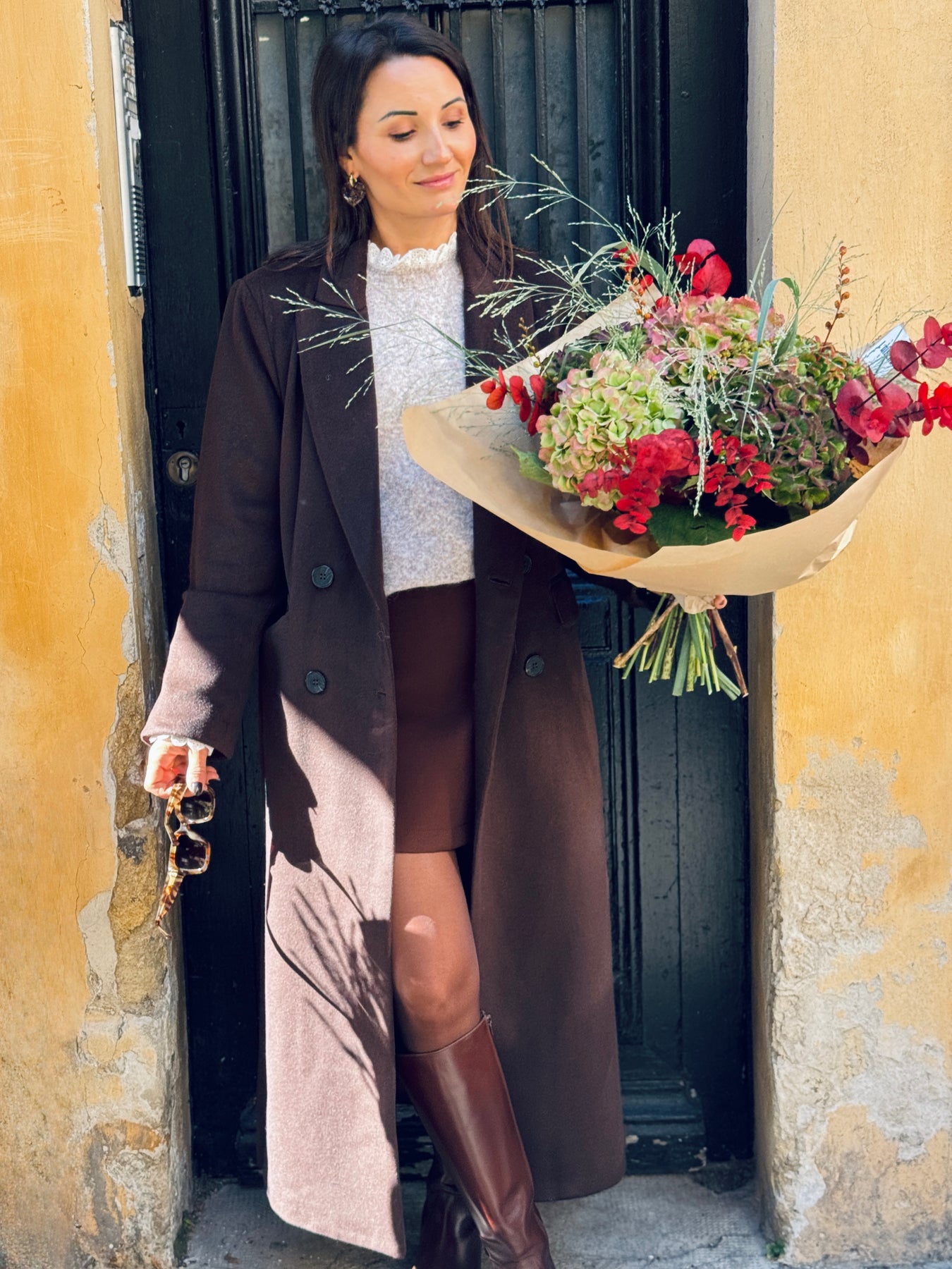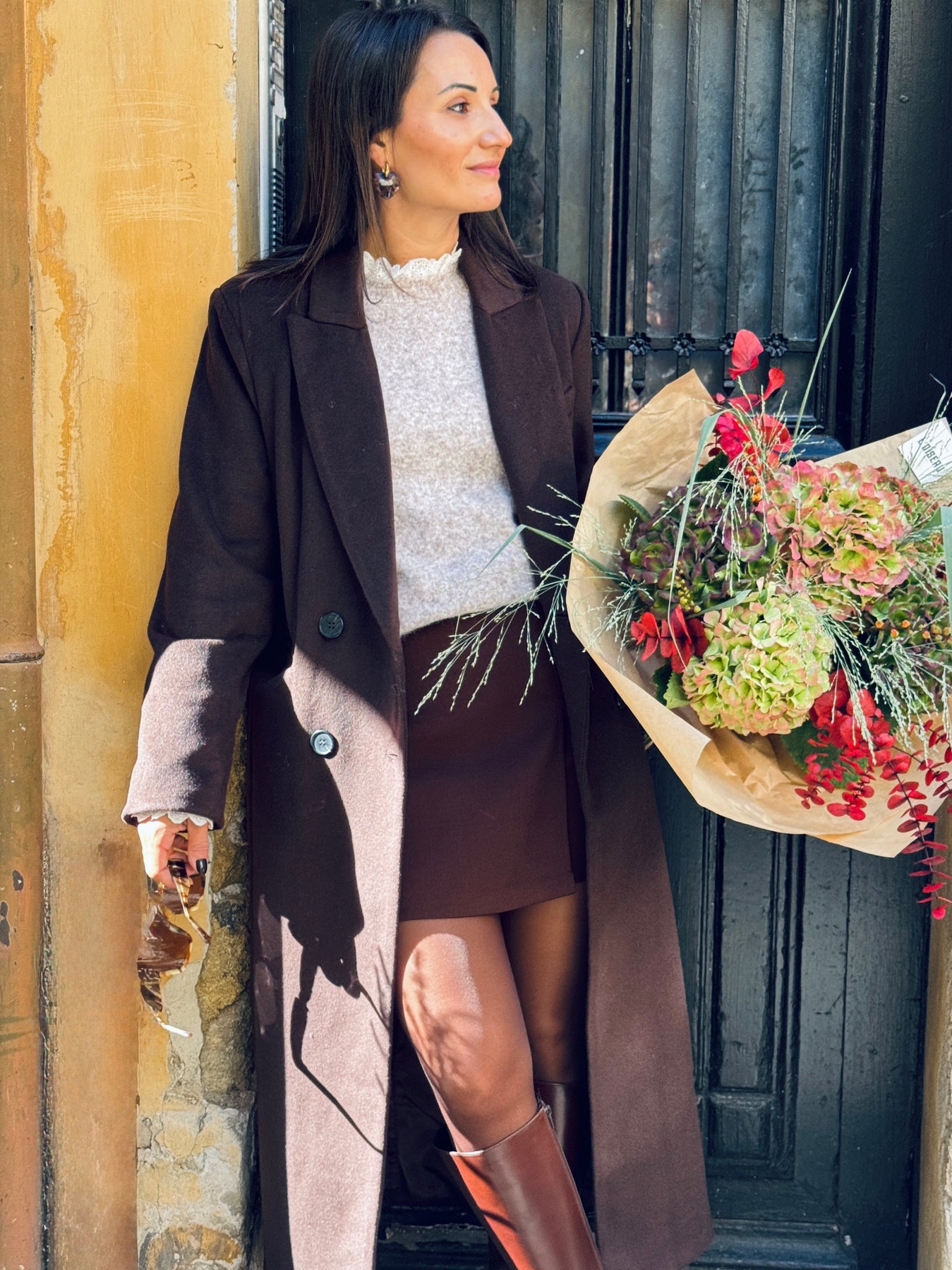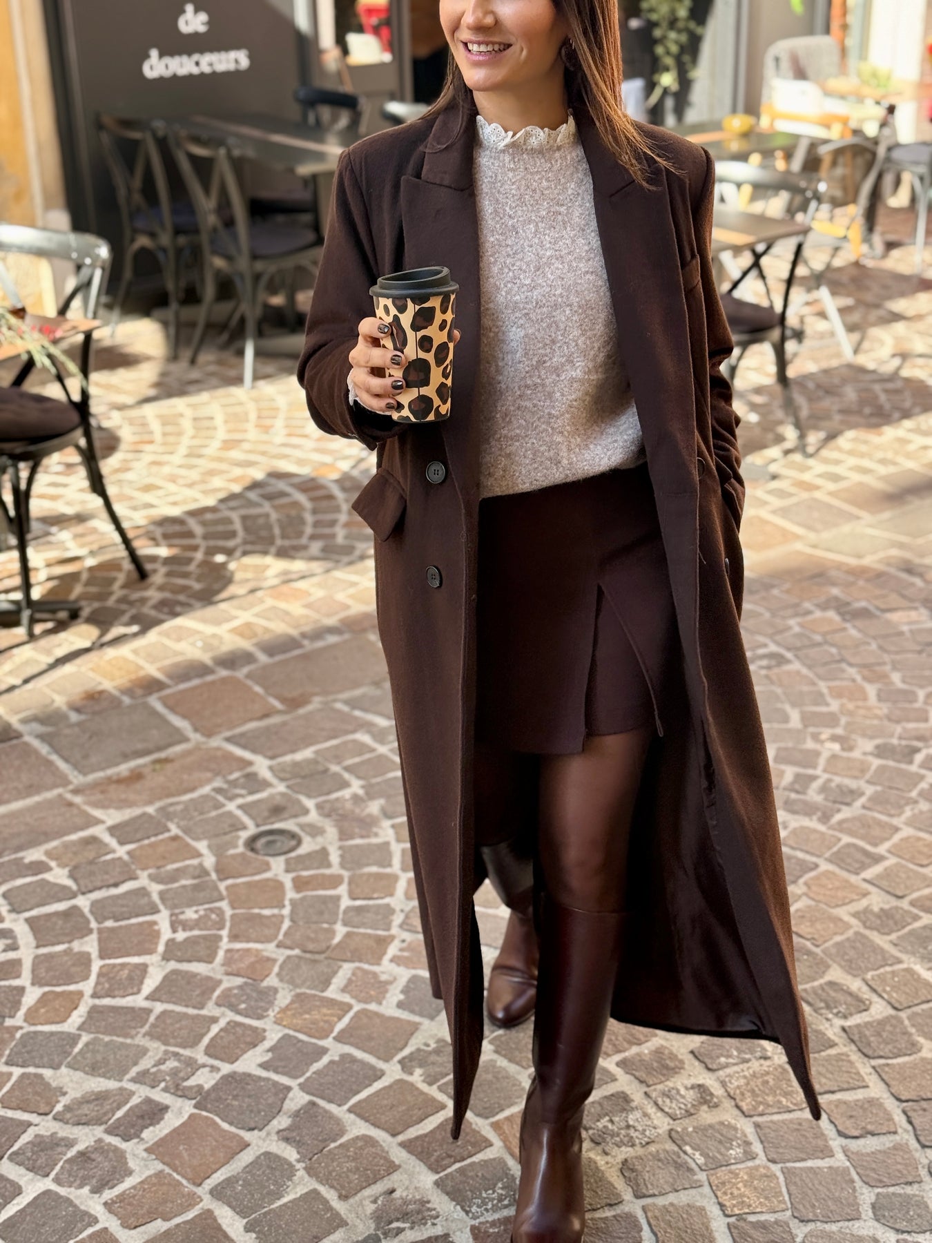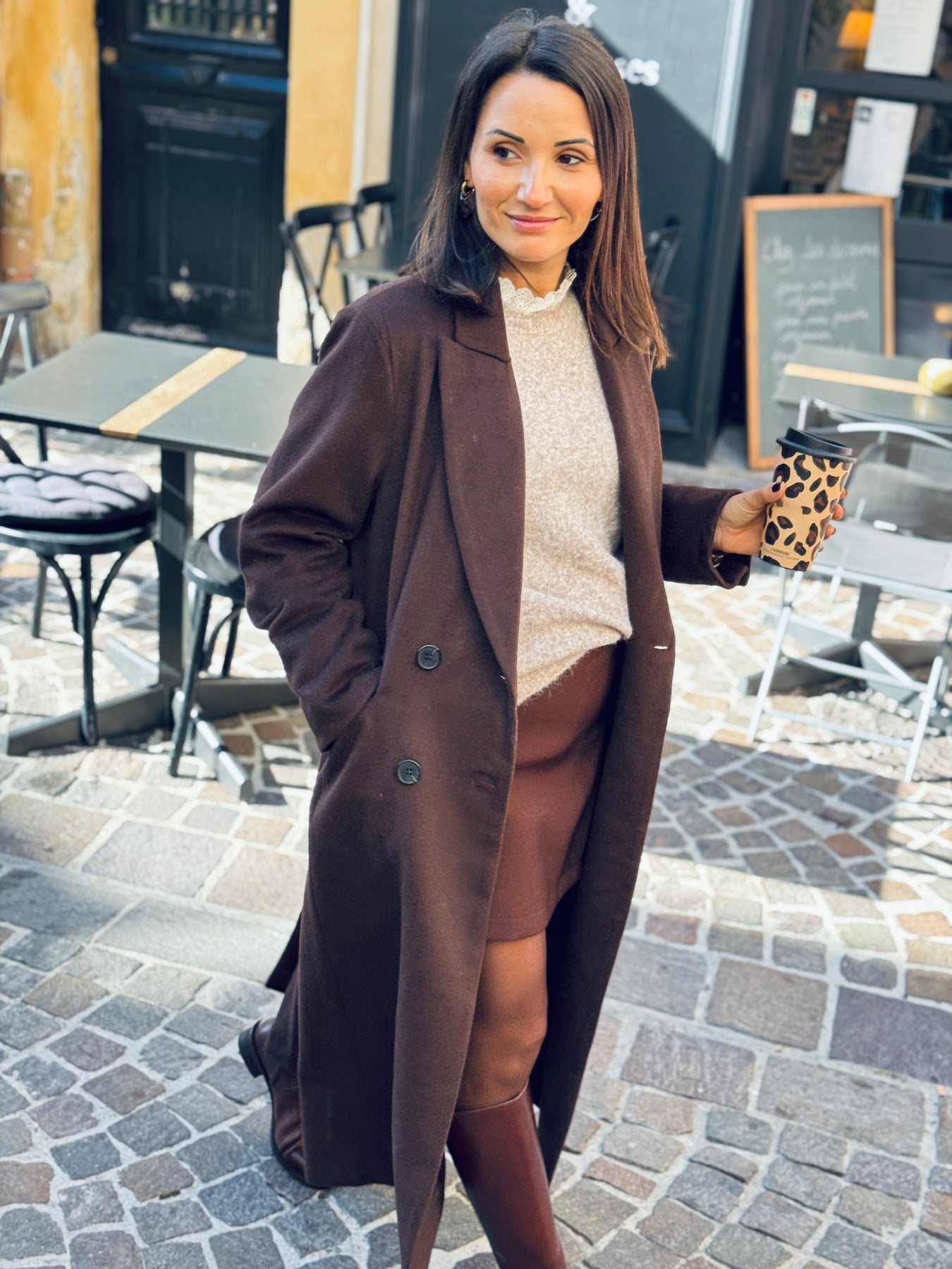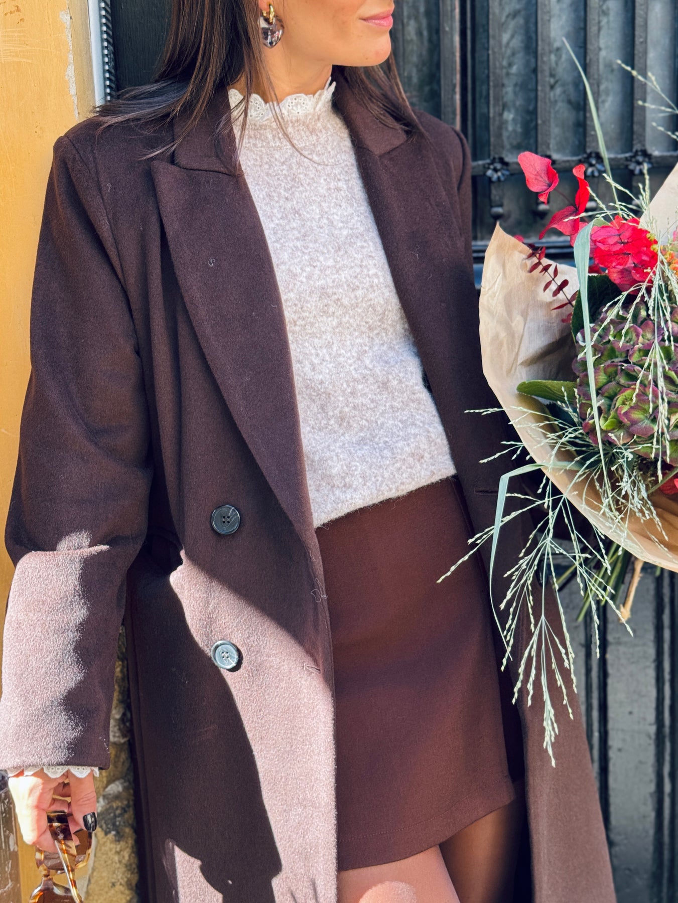 Col tailleur, poches à rabats, fermeture croisée, épaulettes